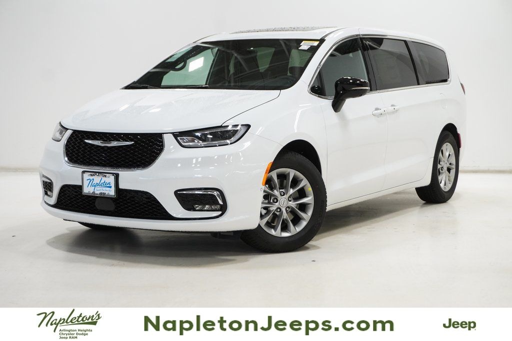 This Pacifica is well equipped with Quick Order Package 27P, Safety Sphere (360 Surround View Camera System and ParkSense Front/Rear Park Assist with Stop), 13 Speakers, 18" x 7.5" Painted Aluminum Wheels, 3.25 Axle Ratio, 3rd row seats: split-bench, 4-Wheel Disc Brakes, ABS brakes, Air Conditioning, Alloy wheels, AM/FM radio: SiriusXM 360L, Apple CarPlay/Android Auto, Audio memory, Auto-dimming Rear-View mirror, Automatic temperature control, Black Seats, Brake assist, Bumpers: body-color, Compass, Delay-off headlights, Driver door bin, Driver vanity mirror, Driver's Seat Mounted Armrest, Dual front impact airbags, Dual front side impact airbags, Electronic Stability Control, Emergency communication system: Chrysler Connect, Four wheel independent suspension, Front anti-roll bar, Front Bucket Seats, Front dual zone A/C, Front fog lights, Front reading lights, Fully automatic headlights, Garage door transmitter, Gloss Black Exterior Mirrors, Heated door mirrors, Heated front seats, Heated rear seats, Heated steering wheel, Illuminated entry, Integrated Active Noise Cancellation, Knee airbag, Low tire pressure warning, Memory seat, Nappa Leather Bucket Seats, Navigation System, Occupant sensing airbag, Outside temperature display, Overhead airbag, Overhead console, Panic alarm, ParkView Rear Back-Up Camera, Passenger door bin, Passenger seat mounted armrest, Passenger vanity mirror, Power door mirrors, Power driver seat, Power Liftgate, Power moonroof, Power passenger seat, Power steering, Power windows, Radio data system, Radio: Uconnect 5 Nav with 10.1" Display, Rain sensing wipers, Rear air conditioning, Rear reading lights, Rear window defroster, Rear window wiper, Reclining 3rd row seat, Remote keyless entry, Roof rack, Security system, Speed control, Split folding rear seat, Spoiler, Steering wheel mounted audio controls, Tachometer, Telescoping steering wheel, Tilt steering wheel, Touring Suspension, Traction control, Trip computer, Turn signal indicator mirrors, Variably intermittent wipers, Ventilated front seats, and Voltmeter.