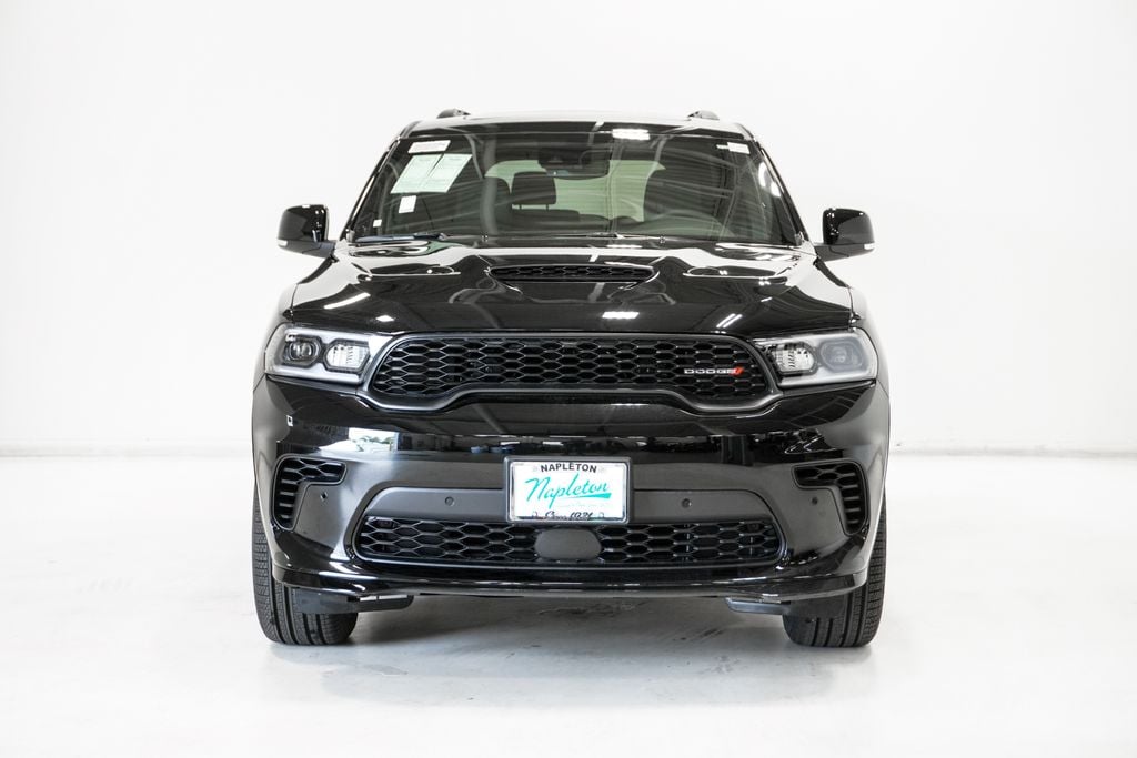 This Durango is well equipped with Blacktop Redline Package (2nd Row Fold/Tumble Captain Chairs, 2nd Row Mini Console with Cupholders, 2nd Row Seat Mounted Inboard Armrests, 3rd Row Floor Mat and Mini Console, 6-Passenger Seating, Black Roof Rails, Blacktop Leather SRT Performance Seats, Crypto Sweep Etch Accents, Floor Console with Leather Armrest, Gloss Black Badges, Gloss Black Exterior Mirrors, GT Decal with Red Tracer, Heated Second Row Seats, Integrated Roof Rail Crossbars, Performance Hood, Performance Lower Splitter, Power 8-Way Driver Memory 8-Way Passenger Seats, Power Driver/Passenger 4-Way Lumbar Adjust, Premium Door Trim Panel, Premium Instrument Panel, Satin Black Dodge Tail Lamp Badge, SRT Rear Spoiler, Ventilated Front Seats, and Wheels: 20" x 8" Black Noise Aluminum), Quick Order Package 2BH GT Plus (115V Auxiliary Power Outlet, 180 Amp Alternator, 506 Watt Amplifier, 7 and 4 Pin Wiring Harness, 9 Alpine Amplified Speakers with Subwoofer, Adaptive Cruise Control with Stop, Advanced Brake Assist, Auto High Beam Headlamp Control, Auto-Dimming Exterior Driver Mirror, Blind Spot with Trailer Detection, Bright Cargo Area Scuff Pads, Class IV Receiver Hitch, Dual Remote USB Port - Charge Only, Exterior Mirrors with Heating Element, Exterior Mirrors with Memory, Exterior Mirrors with Supplemental Signals, Full Speed Forward Collision Warning Plus, Heavy-Duty Engine Cooling, Lane Departure Warning Plus, Leather Trimmed Bucket Seats, Leather Wrapped Door Panels, LED Auxiliary Low Beam and Turn Signal, ParkSense Front/Rear Park Assist with Stop, Power 6x9 Multi-Function Foldaway Mirrors, Power Sunroof, Power Tilt and Telescopic Steering Column, Rear Load Leveling Suspension, Red Accent Stitching, Security Alarm, Sun Visors with Illuminated Vanity Mirrors, Trailer Brake Control, and Wireless Charging Pad), AWD, 3.45 Rear Axle Ratio, 3rd row seats: split-bench, 4-Wheel Disc Brakes, 6 Speakers, ABS brakes, Air Conditioning, Alloy wheels, AM/FM radio: SiriusXM w/360L, Apple CarPlay/Android Auto, Auto-dimming Rear-View mirror, Automatic temperature control, Brake assist, Bumpers: body-color, Cloth Bucket Seats with Shift Insert, Compass, Delay-off headlights, Driver door bin, Driver vanity mirror, Dual front impact airbags, Dual front side impact airbags, Electronic Stability Control, Emergency communication system: Dodge Connect, Four wheel independent suspension, Front anti-roll bar, Front Bucket Seats, Front Center Armrest w/Storage, Front dual zone A/C, Front License Plate Bracket, Front reading lights, Fully automatic headlights, Garage door transmitter, Heated door mirrors, Heated front seats, Heated steering wheel, Illuminated entry, Knee airbag, Leather steering wheel, Low tire pressure warning, Navigation System, Occupant sensing airbag, Outside temperature display, Overhead airbag, Overhead console, Panic alarm, ParkView Rear Back-Up Camera, Passenger door bin, Passenger vanity mirror, Power door mirrors, Power driver seat, Power Liftgate, Power steering, Power windows, Radio data system, Radio: Uconnect 5 Nav with 10.1" Display, Rear air conditioning, Rear anti-roll bar, Rear reading lights, Rear seat center armrest, Rear window defroster, Rear window wiper, Remote keyless entry, Speed control, Speed-sensing steering, Speed-Sensitive Wipers, Split folding rear seat, Spoiler, Sport steering wheel, Steering wheel mounted audio controls, Tachometer, Telescoping steering wheel, Tilt steering wheel, Traction control, Trip computer, Variably intermittent wipers, Voltmeter, and Wheels: 20" x 8" Fine Silver.