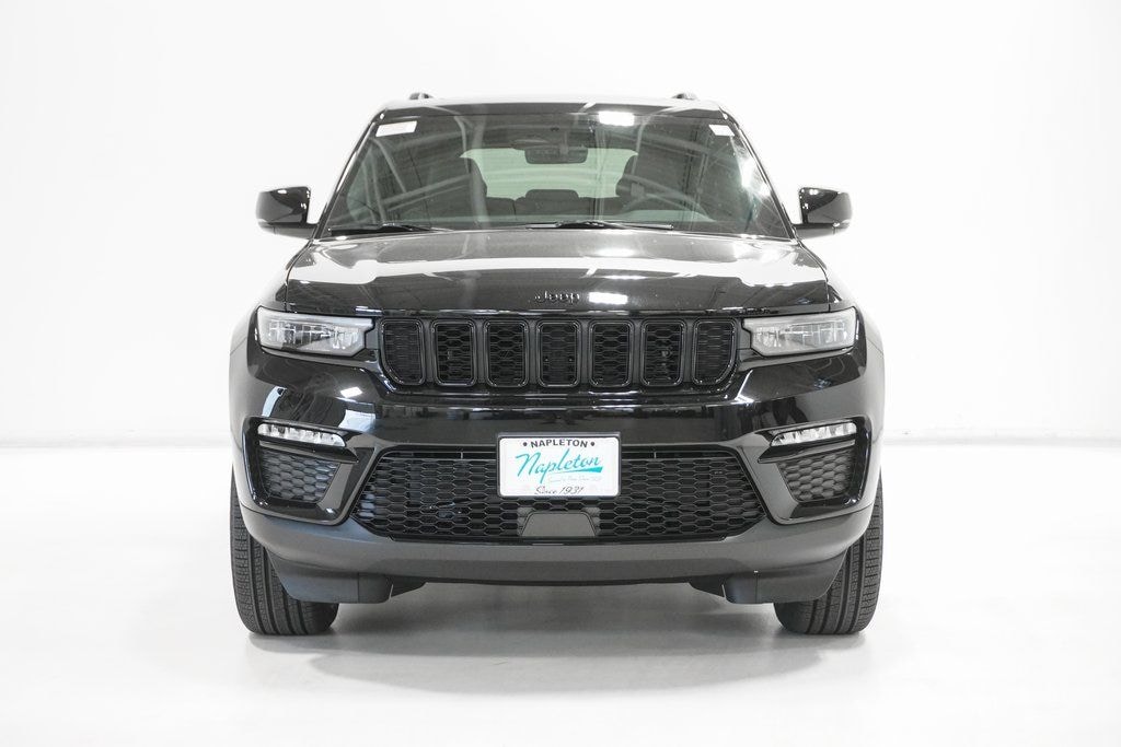 This Grand Cherokee is well equipped with Blackout Model (Black Painted Roof, Delete Limited Badge, Dual-Pane Panoramic Sunroof, Gloss Black Exterior Accents, and Wheels: 20" x 8.5" Black Painted Aluminum), Quick Order Package 23E, 4WD, 4-Wheel Disc Brakes, 6 Speakers, ABS brakes, Active Noise Control System, Air Conditioning, Alloy wheels, AM/FM radio: SiriusXM with 360L, Anti-whiplash front head restraints, Audio memory, Auto High-beam Headlights, Automatic temperature control, Brake assist, Bumpers: body-color, Capri Leatherette Seats, Compass, Delay-off headlights, Driver door bin, Driver vanity mirror, Dual front impact airbags, Dual front side impact airbags, Electronic Stability Control, Emergency communication system, Four wheel independent suspension, Front anti-roll bar, Front Bucket Seats, Front Center Armrest w/Storage, Front dual zone A/C, Front fog lights, Front License Plate Bracket, Front reading lights, Fully automatic headlights, Garage door transmitter, Heated door mirrors, Heated front seats, Heated rear seats, Heated steering wheel, Illuminated entry, Knee airbag, Low tire pressure warning, Memory seat, Model Year Tracking, Navigation System, Normal Duty Suspension, Occupant sensing airbag, Outside temperature display, Overhead airbag, Overhead console, Panic alarm, ParkView Rear Back-Up Camera, Passenger door bin, Passenger vanity mirror, Power door mirrors, Power driver seat, Power Liftgate, Power passenger seat, Power steering, Power windows, Radio data system, Radio: Uconnect 5 Nav with 10.1" Display, Rear anti-roll bar, Rear reading lights, Rear window defroster, Rear window wiper, Remote keyless entry, Security system, Speed control, Speed-Sensitive Wipers, Split folding rear seat, Spoiler, Steering wheel mounted audio controls, Tachometer, Telescoping steering wheel, Tilt steering wheel, Traction control, Trip computer, Turn signal indicator mirrors, Variably intermittent wipers, Voltmeter, and Wheels: 18" x 8" Polished/Painted Aluminum.