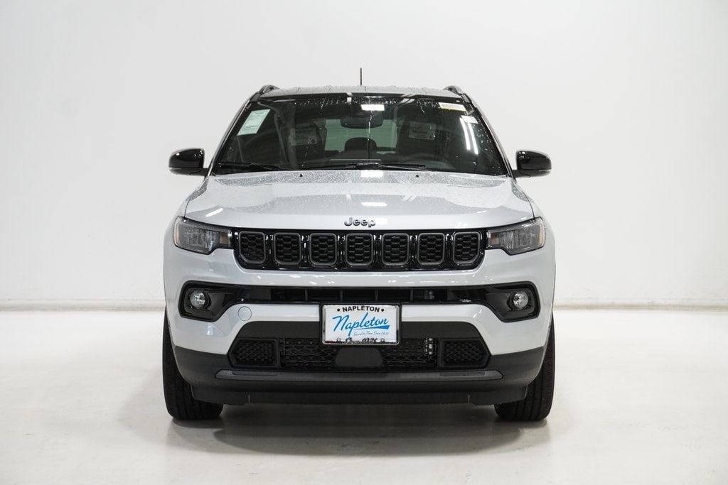This Compass is well equipped with Limited Altitude Pack (Black Day Light Opening Moldings, Gloss Black Surround/Neutral Gray Rings, Neutral Gray Exterior Accents, Neutral Gray Exterior Badging, Piano Black Interior Accents, and Wheels: 19" x 7.5" Aluminum Painted), Quick Order Package 29W Limited Altitude, 4WD, 10.1" Touchscreen Display, 3.73 Final Drive Ratio, 4-Wheel Disc Brakes, 4G LTE Wi-Fi Hot Spot, 6 Speakers, ABS brakes, Air Conditioning, Alloy wheels, AM/FM radio: SiriusXM, Auto High-beam Headlights, Auto-dimming Rear-View mirror, Automatic temperature control, Brake assist, Bumpers: body-color, Compass, Delay-off headlights, Driver door bin, Driver vanity mirror, Dual front impact airbags, Dual front side impact airbags, Electronic Stability Control, Emergency communication system: SiriusXM Guardian, Four wheel independent suspension, Front anti-roll bar, Front Bucket Seats, Front Center Armrest w/Storage, Front dual zone A/C, Front fog lights, Front License Plate Bracket, Front reading lights, Fully automatic headlights, Global Telematics Box Module, Heated door mirrors, Heated front seats, Heated steering wheel, Illuminated entry, Knee airbag, Leather Shift Knob, Leather steering wheel, Leatherette Seats, Low tire pressure warning, Occupant sensing airbag, Outside temperature display, Overhead airbag, Overhead console, Panic alarm, ParkView Rear Back-Up Camera, Passenger door bin, Passenger vanity mirror, Power door mirrors, Power driver seat, Power Liftgate, Power steering, Power windows, Premium audio system: UConnect 5, Radio: Uconnect 5 with 10.1" Display, Rain sensing wipers, Rear anti-roll bar, Rear seat center armrest, Rear window defroster, Rear window wiper, Remote keyless entry, Security system, SiriusXM Guardian - Included Trail (B), SiriusXM Radio Service, Speed control, Split folding rear seat, Spoiler, Steering wheel mounted audio controls, Tachometer, Telescoping steering wheel, Tilt steering wheel, Traction control, Trip computer, Turn signal indicator mirrors, Variably intermittent wipers, and Wheels: 18" x 7" Painted Diamond Cut Aluminum.