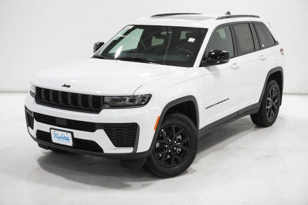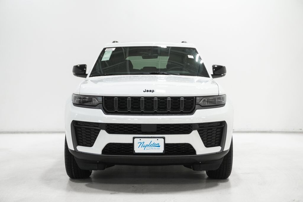 This Grand Cherokee is well equipped with Laredo Altitude Appearance Package, MOPAR Finishing Package (MOPAR Front Splash Guards, MOPAR Paint Protection Film, and MOPAR Rear Splash Guards with Jeep Logo), Quick Order Package 2BB Laredo Altitude (115V Auxiliary Power Outlet, 12.3" Touchscreen Display, 240 Amp Alternator, 4G LTE Wi-Fi Hot Spot, Active Driving Assist System, Active Noise Control System, an-Teak/Satin Chrome Interior Accents, Apple CarPlay, Black Headliner, Body Color Door Handles (B), Capri Leatherette/Suede Seats, Connected Travel and Traffic Services, Connectivity - US/Canada, Delete Laredo Badge, Disassociated Touchscreen Display, Dual Exhaust Tips, Exterior Accents Dark Neutral Metallic, For Details, Visit DriveUconnect.com, Front Fascia Upper A, Global Telematics Box Module (TBM), Google Android Auto, GPS Antenna Input, GPS Navigation, HD Radio, Heated Front Seats, Heated Steering Wheel, Heavy-Duty Engine Cooling, Integrated Center Stack Radio, Integrated Voice Command with Bluetooth, Intersection Collision Assist System, Power Liftgate, Radio: Uconnect 5 Nav with 12.3" Display, Rain Sensitive Windshield Wipers, Rear Fascia Upper A, Remote Start System, Secondary Active Grille Shutters, Selec-Terrain System, Selectable Tire Fill Alert, SiriusXM with 360L, Traffic Sign Recognition, USB Host Flip, Wheels: 18" x 8.0" Fully Painted Aluminum 1, and Wireless Charging Pad), 4WD, 4-Wheel Disc Brakes, 6 Speakers, ABS brakes, Air Conditioning, Alloy wheels, AM/FM radio: SiriusXM, Anti-whiplash front head restraints, AppLink/Apple CarPlay and Android Auto, Automatic temperature control, Auxiliary Battery, Brake assist, Bumpers: body-color, Cloth Seats, Compass, Delay-off headlights, Driver door bin, Driver vanity mirror, Dual front impact airbags, Dual front side impact airbags, Electronic Stability Control, Emergency communication system, Four wheel independent suspension, Front anti-roll bar, Front Bucket Seats, Front Center Armrest w/Storage, Front dual zone A/C, Front License Plate Bracket, Front reading lights, Fully automatic headlights, Gloss Black Exterior Mirrors, Heated door mirrors, Heated Exterior Mirrors, Illuminated entry, Knee airbag, Low tire pressure warning, Manual Folding Exterior Mirrors, Normal Duty Suspension, Occupant sensing airbag, Outside temperature display, Overhead airbag, Overhead console, Panic alarm, ParkView Rear Back-Up Camera, Passenger door bin, Passenger vanity mirror, Power door mirrors, Power driver seat, Power steering, Power Sunroof, Power windows, Radio data system, Radio: Uconnect 5 with 8.4" Display, Rear anti-roll bar, Rear reading lights, Rear window defroster, Rear window wiper, Remote keyless entry, Security system, Speed control, Speed-Sensitive Wipers, Split folding rear seat, Spoiler, Steering wheel mounted audio controls, Tachometer, Telescoping steering wheel, Tilt steering wheel, Traction control, Trip computer, Variably intermittent wipers, Voltmeter, and Wheels: 18" x 8.0" Fully Painted Aluminum.