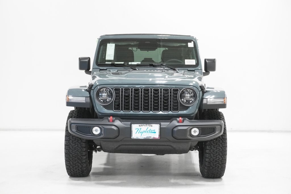 This Wrangler is well equipped with Convenience Group (Heated Front Seats, Heated Steering Wheel, and Universal Garage Door Opener), Quick Order Package 24R Rubicon, 12.3" Touchscreen Display, 4-Wheel Disc Brakes, 4.10 Rear Axle Ratio, 4G LTE Wi-Fi Hot Spot, 8 Speakers, ABS brakes, Air Conditioning, Alloy wheels, AM/FM radio: SiriusXM with 360L, Apple CarPlay, Apple CarPlay/Android Auto, Automatic temperature control, Aux Battery, Auxiliary Switches, Body Color Rubicon Highline Flare, Brake assist, Class II Receiver Hitch, Cloth Low-Back Bucket Seats, Compass, Connectivity - US/Canada, Delay-off headlights, Driver door bin, Driver vanity mirror, Dual front impact airbags, Dual front side impact airbags, Electronic Stability Control, Emergency communication system: Jeep Connect, For More Info, Call 800-643-2112, Front anti-roll bar, Front Bucket Seats, Front Center Armrest w/Storage, Front dual zone A/C, Front fog lights, Front License Plate Bracket, Front reading lights, Fully automatic headlights, Google Android Auto, Heated door mirrors, Illuminated entry, Integrated Center Stack Radio, Integrated roll-over protection, Jeep Trail Rated Kit, Low tire pressure warning, MOPAR All-Weather Floor Mats, Non-Lock Fuel Cap Without Discriminator, Occupant sensing airbag, Outside temperature display, Overhead airbag, Panic alarm, ParkView Rear Back-Up Camera, Passenger door bin, Passenger vanity mirror, Performance Suspension, Power door mirrors, Power steering, Power Top Quarter Window Storage Bag, Power windows, Radio data system, Radio: Uconnect 5 with 12.3" Display, Rear anti-roll bar, Rear reading lights, Rear Window Defroster, Rear Window Wiper/Washer, Remote keyless entry, Removable Rear Quarter Windows, Security system, SiriusXM Radio Service, SiriusXM with 360L, Sky 1-Touch Power Top, Speed control, Split folding rear seat, Steering wheel mounted audio controls, Stop-Start Dual Battery System, Tachometer, Telescoping steering wheel, Tilt steering wheel, Traction control, Trip computer, Variably intermittent wipers, Voltmeter, and Wheels: 17" x 7.5" Machined/Painted Black.