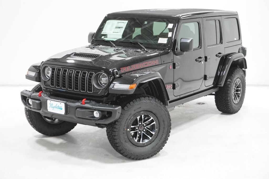 This Wrangler is well equipped with Quick Order Package 24Y Rubicon X (12.3" Touchscreen Display, 4G LTE Wi-Fi Hot Spot, Acoustic Front Seat Area Carpet, Acoustic Laminated Front Door Glass, Alpine Premium Audio System, Apple CarPlay, Auto High Beam Headlamp Control, Auto-Dimming Rear-View Mirror, Blind Spot and Cross Path Detection, Body Color 3-Piece Hard Top, Body Color Rubicon Highline Flare, Connected Travel and Traffic Services, Connectivity - US/Canada, Freedom Panel Storage Bag, Google Android Auto, HD Radio, Heated Front Seats, Heated Steering Wheel, Integrated Off-Road Camera, Integrated Voice Command with Bluetooth, Leather Wrapped Park Brake Handle, Leather Wrapped Shift Knob, MOPAR Hardtop Headliner, Nappa Leather Seats, No Soft Top, ParkSense Rear Park Assist System, Power 4-Way Driver Lumbar Adjust, Power 4-Way Passenger Lumbar Adjust, Power Adjust 8-Way Driver Seat, Power Adjust 8-Way Front Passenger Seat, Premium Door Trim Panel, Radio: Uconnect 5 Navigation with 12.3" Display, Rear Window Defroster, Rear Window Wiper/Washer, SiriusXM with 360L, Steel Front Bumper, Steel Rear Bumper, and Universal Garage Door Opener), Steel Performance Hood Package (Performance Hood), Trailer Tow and Auxiliary Switch Group (Auxiliary Switches and Class II Receiver Hitch), Trailer Tow Prep Package, 35" Tire Suspension, 4-Wheel Disc Brakes, 8 Speakers, ABS brakes, Air Conditioning, Alloy wheels, AM/FM radio: SiriusXM with 360L, Apple CarPlay/Android Auto, Automatic temperature control, Aux Battery, Brake assist, Cloth Low-Back Bucket Seats, Compass, Delay-off headlights, Driver door bin, Driver vanity mirror, Dual front impact airbags, Dual front side impact airbags, Electronic Stability Control, Emergency communication system: Jeep Connect, For More Info, Call 800-643-2112, Front anti-roll bar, Front Bucket Seats, Front Center Armrest w/Storage, Front dual zone A/C, Front fog lights, Front License Plate Bracket, Front reading lights, Fully automatic headlights, Heated door mirrors, Illuminated entry, Integrated Center Stack Radio, Integrated roll-over protection, Jeep Trail Rated Kit, Low tire pressure warning, MOPAR All-Weather Floor Mats, MOPAR Hinge-Gate Reinforcement, Non-Lock Fuel Cap Without Discriminator, Occupant sensing airbag, Outside temperature display, Overhead airbag, Panic alarm, ParkView Rear Back-Up Camera, Passenger door bin, Passenger vanity mirror, Performance Suspension, Power door mirrors, Power steering, Power Top Quarter Window Storage Bag, Power windows, Radio data system, Radio: Uconnect 5 with 12.3" Display, Rear anti-roll bar, Rear reading lights, Remote keyless entry, Removable Rear Quarter Windows, Security system, SiriusXM Radio Service, Sky One-Touch Power Top, Speed control, Split folding rear seat, Steering wheel mounted audio controls, Stop-Start Dual Battery System, Tachometer, Telescoping steering wheel, Tilt steering wheel, Traction control, Trip computer, Variably intermittent wipers, Voltmeter, Wheels: 17" x 7.5" Machined/Painted Black, and Wheels: 17" x 8" Machined with Black Pockets.