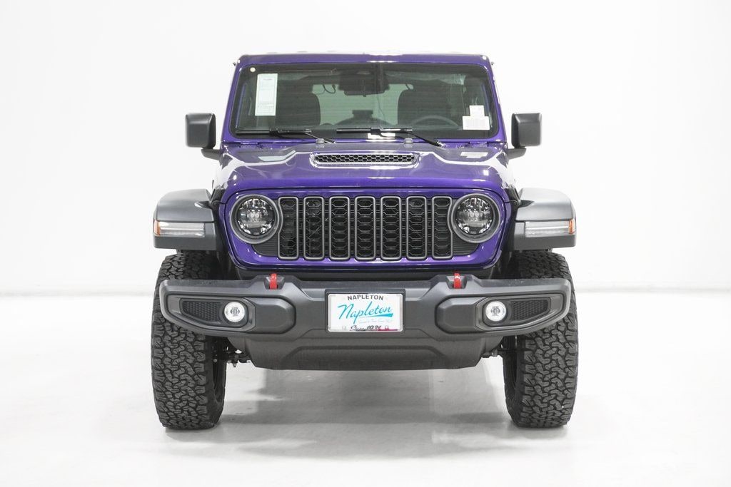 This Wrangler is well equipped with Convenience Group (Heated Front Seats, Heated Steering Wheel, and Universal Garage Door Opener), Quick Order Package 24R Rubicon, Steel Performance Hood Package (Performance Hood), 12.3" Touchscreen Display, 4-Wheel Disc Brakes, 4.10 Rear Axle Ratio, 4G LTE Wi-Fi Hot Spot, 8 Speakers, ABS brakes, Air Conditioning, Alloy wheels, AM/FM radio: SiriusXM with 360L, Apple CarPlay, Apple CarPlay/Android Auto, Automatic temperature control, Aux Battery, Auxiliary Switches, Black 3-Piece Hard Top, Brake assist, Class II Receiver Hitch, Cloth Low-Back Bucket Seats, Compass, Connectivity - US/Canada, Delay-off headlights, Driver door bin, Driver vanity mirror, Dual front impact airbags, Dual front side impact airbags, Electronic Stability Control, Emergency communication system: Jeep Connect, For More Info, Call 800-643-2112, Freedom Panel Storage Bag, Front anti-roll bar, Front Bucket Seats, Front Center Armrest w/Storage, Front dual zone A/C, Front fog lights, Front License Plate Bracket, Front reading lights, Fully automatic headlights, Google Android Auto, Heated door mirrors, Illuminated entry, Integrated Center Stack Radio, Integrated roll-over protection, Jeep Trail Rated Kit, Low tire pressure warning, MOPAR All-Weather Floor Mats, No Soft Top, Non-Lock Fuel Cap Without Discriminator, Occupant sensing airbag, Outside temperature display, Overhead airbag, Panic alarm, ParkView Rear Back-Up Camera, Passenger door bin, Passenger vanity mirror, Performance Suspension, Power door mirrors, Power steering, Power windows, Radio data system, Radio: Uconnect 5 with 12.3" Display, Rear anti-roll bar, Rear reading lights, Rear Window Defroster, Rear Window Wiper/Washer, Remote keyless entry, Security system, SiriusXM Radio Service, SiriusXM with 360L, Speed control, Split folding rear seat, Steering wheel mounted audio controls, Stop-Start Dual Battery System, Tachometer, Telescoping steering wheel, Tilt steering wheel, Traction control, Trip computer, Variably intermittent wipers, Voltmeter, and Wheels: 17" x 7.5" Machined/Painted Black.
