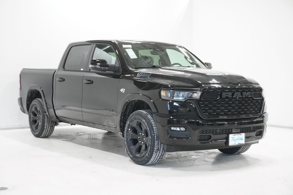This 1500 is well equipped with Bed Utility Group (Exterior 115V AC Outlet, MOPAR 4 Adjustable Cargo Tie-Down Hooks, MOPAR Spray in Bedliner, and Pick-Up Box Lighting), Big Horn Level 2 Equipment Group (115V Auxiliary Power Outlet, 115V Auxiliary Rear Power Outlet, 12" Touchscreen Display, 2nd Row in Floor Storage Bins, 3 Rear Seat Head Restraints, 4 Way Front Headrests, 400W Inverter, 4G LTE Wi-Fi Hot Spot, 9 Amplified Speakers with Subwoofer, Air Conditioning ATC with Dual Zone Control, Apple CarPlay, Auto Power-Folding Mirrors, Auto-Dimming Exterior Driver Mirror, Auto-Dimming Rear-View Mirror, Black Exterior Mirrors, Black Premium Power Mirrors, Body Color Fender Flares, Bucket Seats, Center Console Parts Module, Cluster 7.0" TFT Color Display, Configurable Drive Mode, Connected Travel and Traffic Services, Connectivity - US/Canada, Convex Wide-Angle Exterior Mirror Insert, Deluxe Cloth Bucket Seats, Disassociated Touchscreen Display, Exterior Mirrors Courtesy Lamps, Exterior Mirrors with Heating Element, Exterior Mirrors with Supplemental Signals, Front Seat Back Map Pockets, Full Length Floor Console, Global Telematics Box Module, Glove Box Lamp, Google Android Auto, GPS Antenna Input, GPS Navigation, HD Radio, Heated Front Seats, Heated Steering Wheel, Integrated Center Stack Radio, Integrated Voice Command with Bluetooth, Leather Wrapped Steering Wheel, LED Dome Lamp with on/Off Switch, LED Footwell Lighting, Manual Adjust 4-Way Front Passenger Seat, Media Hub with 2 Charge Only USBs, Overhead LED Lamps, Power 2-Way Driver Lumbar Adjust, Power Adjust 8-Way Driver Seat, Power Adjustable Pedals, Premium Overhead Console, Radio: Uconnect 5 Navigation with 12.0" Display, Rear 60/40 Folding Seat, Rear Center Armrest, Rear Power Sliding Window, Rear Window Defroster, Remote Tailgate Release, Security Alarm, SiriusXM Radio Service, SiriusXM with 360L, Steering Wheel Mounted Audio Controls, Sun Visors with Illuminated Vanity Mirrors, Universal Garage Door Opener, and USB Host Flip), Night Edition (Accent Color Door Handles, Accent Color Premium Power Mirrors, Accent Color Tailgate Handle, Anti-Spin Differential Rear Axle, Black Exterior Truck Badging, Black Headlamp Bezels, Black Interior Accents, Black Painted Exterior Mirrors Caps, Black Tail Lamp Bezels, Body Color Front Bumper, Body Color Rear Bumper with Step Pads, Dual Exhaust with Black Tips, Grille Black Surround Black Mesh, RAM Grille Badge - Black, and Wheels: 20" x 9.0" Aluminum Painted Clad), Quick Order Package 27Z Big Horn, 4-Wheel Disc Brakes, 48V Belt Starter Generator, 6 Speakers, ABS brakes, Air Conditioning, Alloy wheels, AM/FM radio, Apple CarPlay/Android Auto, Auto High-beam Headlights, Brake assist, Bumpers: chrome, Cloth Bucket Seats, Cluster 12" TFT Color Display, Compass, Delay-off headlights, Dome Dual LED Reading Lamp, Driver door bin, Dual front impact airbags, Dual front side impact airbags, Dual-Pane Panoramic Sunroof, Electronic Stability Control, Front anti-roll bar, Front Bucket Seats, Front Center Armrest w/Storage, Front fog lights, Front License Plate Bracket, Front reading lights, Front wheel independent suspension, Fully automatic headlights, Heated door mirrors, Illuminated entry, Low tire pressure warning, Manual Adjust 4-Way Driver Seat, Manual Folding Exterior Mirrors, MOPAR Front and Rear Rubber Floor Mats, Occupant sensing airbag, Outside temperature display, Overhead airbag, Overhead console, Panic alarm, ParkView Rear Back-Up Camera, Passeng