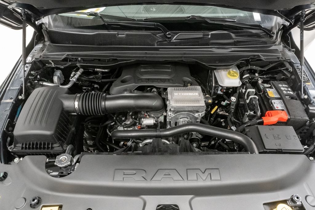 This 1500 is well equipped with Bed Utility Group (Exterior 115V AC Outlet, MOPAR 4 Adjustable Cargo Tie-Down Hooks, and MOPAR Spray in Bedliner), Laramie Level 1 Equipment Group (Rain Sensitive Windshield Wipers and Remote Tailgate Release), Laramie Preferred Package (Accent Color Premium Power Mirrors, Auto Power-Folding Mirrors, Auto-Dimming Exterior Driver Mirror, Black Painted Exterior Mirrors Caps, Body Color Front Bumper, Body Color Rear Bumper with Step Pads, Convex Wide-Angle Exterior Mirror Insert, Dome Dual LED Reading Lamp, Dual-Pane Panoramic Sunroof, Exterior Mirrors Courtesy Lamps, Exterior Mirrors with Heating Element, Exterior Mirrors with Memory, Exterior Mirrors with Supplemental Signals, Grille Surround 3 Body Color Tex 4 Chrome, LED Dome/Reading Lamp, Power Deployable Running Boards, RAM Grille Badge - Chrome, Tow Hooks, and Trailer Brake Control), Quick Order Package 27H Laramie, 10 Speakers, 4-Wheel Disc Brakes, 4G LTE Wi-Fi Hot Spot, ABS brakes, Active Noise Control System, Adjustable pedals, Air Conditioning, Alloy wheels, AM/FM radio: SiriusXM with 360L, Apple CarPlay/Android Auto, Audio memory, Auto High-beam Headlights, Auto-dimming door mirrors, Auto-dimming Rear-View mirror, Automatic temperature control, Brake assist, Bumpers: chrome, Chrome Exterior Mirrors, Compass, Connected Travel and Traffic Services, Connectivity - US/Canada, Delay-off headlights, Driver door bin, Driver vanity mirror, Dual front impact airbags, Dual front side impact airbags, Electronic Stability Control, Front anti-roll bar, Front Bucket Seats, Front Center Armrest w/Storage, Front dual zone A/C, Front fog lights, Front License Plate Bracket, Front reading lights, Front wheel independent suspension, Fully automatic headlights, Garage door transmitter, GPS Navigation, Heated door mirrors, Heated front seats, Heated rear seats, Heated steering wheel, Illuminated entry, Integrated Center Stack Radio, Integrated Voice Command with Bluetooth, Leather steering wheel, Leather Trimmed Bucket Seats, Low tire pressure warning, Memory seat, MOPAR Front and Rear Rubber Floor Mats, Navigation System, Occupant sensing airbag, Off-Road Information Pages, Outside temperature display, Overhead airbag, Overhead console, Panic alarm, ParkView Rear Back-Up Camera, Passenger door bin, Passenger vanity mirror, Pedal memory, Power door mirrors, Power driver seat, Power passenger seat, Power steering, Power windows, Radio data system, Radio: Uconnect 5 Navigation with 12.0" Display, Rear anti-roll bar, Rear reading lights, Rear seat center armrest, Rear step bumper, Rear Wheelhouse Liners, Remote keyless entry, Security system, SiriusXM Radio Service, SiriusXM with 360L, Speed control, Split folding rear seat, Steering wheel mounted audio controls, Tachometer, Telescoping steering wheel, Tilt steering wheel, Traction control, Trip computer, Turn signal indicator mirrors, USB Host Flip, Variably intermittent wipers, Ventilated front seats, Voltmeter, and Wheels: 20" x 9" Premium Paint/Polish.