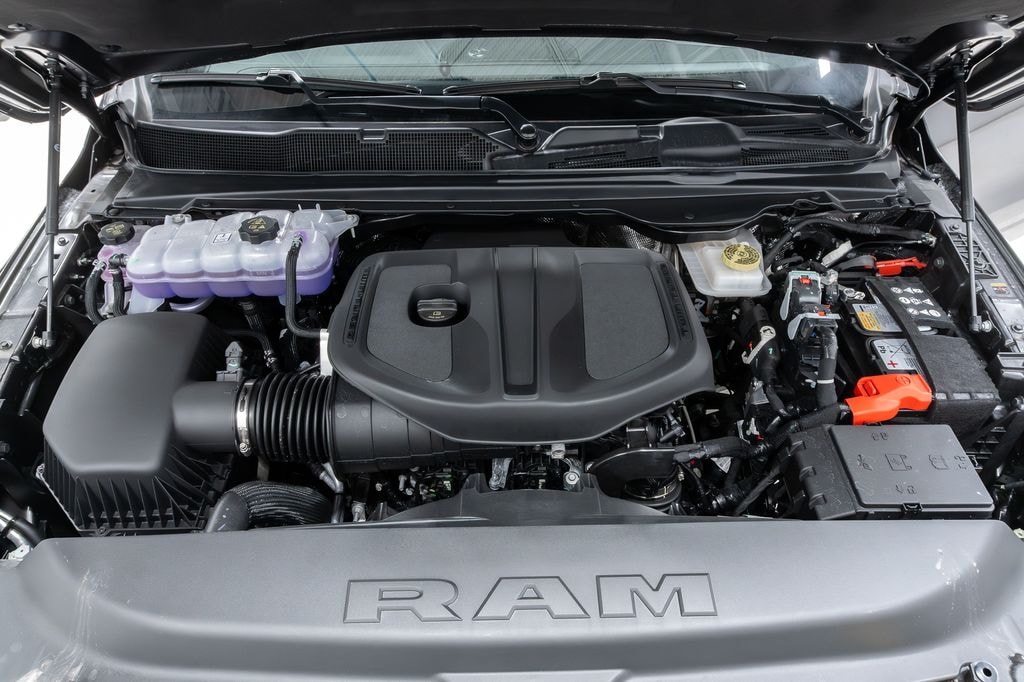 This 1500 is well equipped with Bed Utility Group (Exterior 115V AC Outlet, MOPAR 4 Adjustable Cargo Tie-Down Hooks, and MOPAR Spray in Bedliner), Quick Order Package 21W Rebel, Rebel Level 1 Equipment Group (Auto Power-Folding Mirrors, Auto-Dimming Exterior Driver Mirror, Black Exterior Mirrors, Black Premium Power Mirrors, Convex Wide-Angle Exterior Mirror Insert, Exterior Mirrors Courtesy Lamps, Exterior Mirrors with Heating Element, Exterior Mirrors with Supplemental Signals, Power Adjustable Pedals, Rear Window Defroster, Remote Tailgate Release, and Wireless Charging Pad), 10 Speakers, 3.92 Rear Axle Ratio, 4 Way Front Headrests, 4-Wheel Disc Brakes, 4G LTE Wi-Fi Hot Spot, ABS brakes, Active Noise Control System, Air Conditioning, Alloy wheels, AM/FM radio: SiriusXM with 360L, Apple CarPlay, Apple CarPlay/Android Auto, Auto High-beam Headlights, Auto-dimming Rear-View mirror, Automatic temperature control, Brake assist, Bucket Seats, Cloth/Vinyl Bucket Seats, Compass, Connected Travel and Traffic Services, Connectivity - US/Canada, Delay-off headlights, Disassociated Touchscreen Display, Driver door bin, Driver vanity mirror, Dual front impact airbags, Dual front side impact airbags, Electronic Stability Control, Front anti-roll bar, Front Bucket Seats, Front Center Armrest w/Storage, Front dual zone A/C, Front fog lights, Front License Plate Bracket, Front reading lights, Front Seat Back Map Pockets, Front wheel independent suspension, Full Length Upgraded Floor Console, Fully automatic headlights, Garage door transmitter, Global Telematics Box Module, Google Android Auto, GPS Antenna Input, GPS Navigation, HD Radio, Heated door mirrors, Heated Front Seats, Heated front seats, Heated Steering Wheel, Heated steering wheel, Illuminated entry, Integrated Center Stack Radio, Integrated Voice Command with Bluetooth, Leather steering wheel, Low tire pressure warning, Manual Folding Exterior Mirrors, Mopar Black Tubular Side Steps, Navigation System, Occupant sensing airbag, Off-Road Information Pages, Outside temperature display, Overhead airbag, Overhead console, Panic alarm, ParkView Rear Back-Up Camera, Passenger door bin, Passenger vanity mirror, Power 2-Way Driver Lumbar Adjust, Power Adjust 8-Way Driver Seat, Power door mirrors, Power driver seat, Power steering, Power windows, Radio data system, Radio: Uconnect 5 Navigation with 12.0" Display, Rear 60/40 Folding Seat, Rear anti-roll bar, Rear seat center armrest, Rear step bumper, Remote keyless entry, SiriusXM Radio Service, SiriusXM with 360L, Speed control, Split folding rear seat, Steering wheel mounted audio controls, Tachometer, Telescoping steering wheel, Tilt steering wheel, Traction control, Trailer Brake Control, Trip computer, USB Host Flip, Variably intermittent wipers, Voltmeter, and Wheels: 18" x 8.0" Painted Mid-Gloss Black.