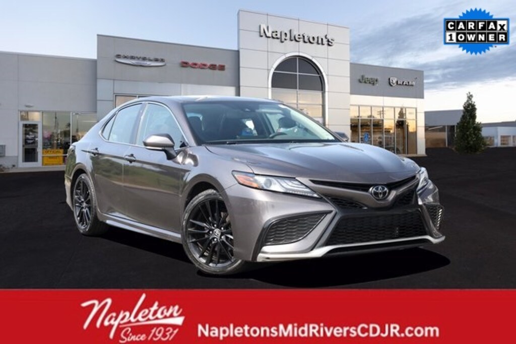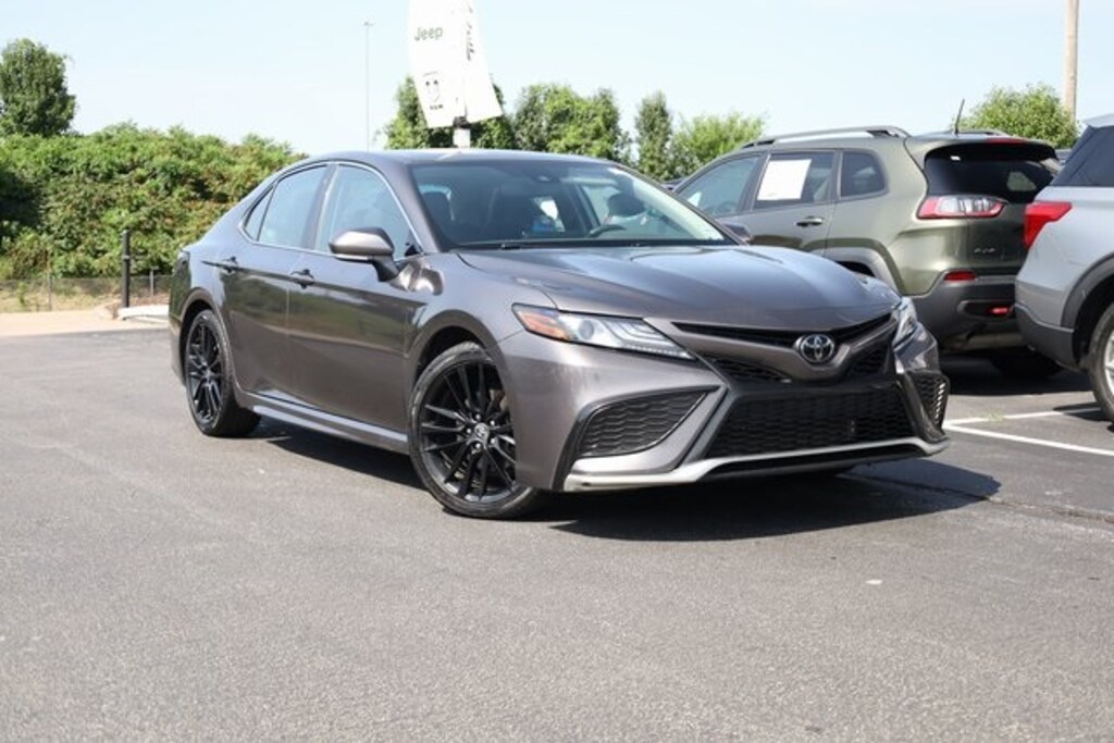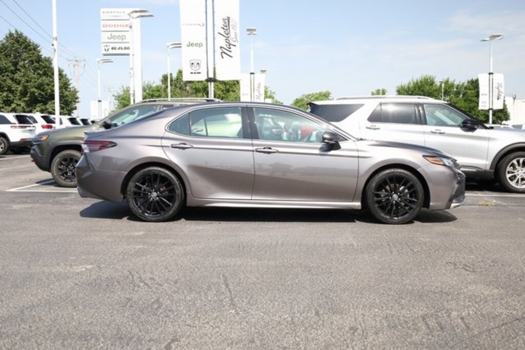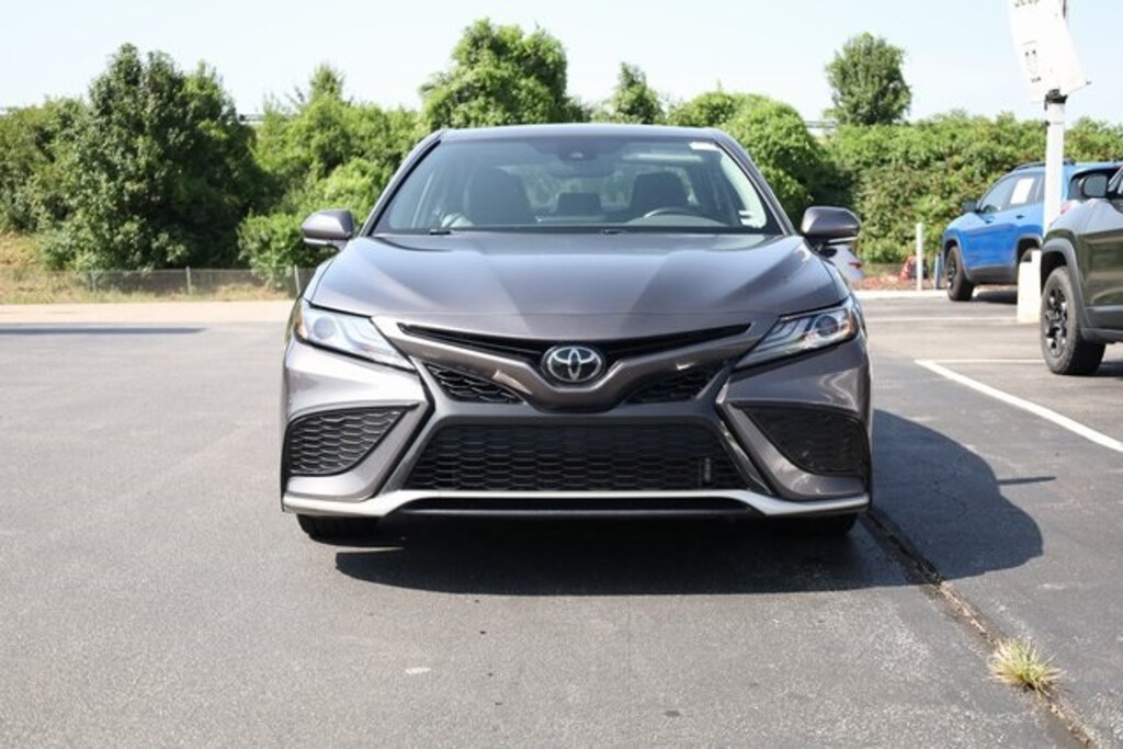 This Camry is well equipped with Leather, 4-Wheel Disc Brakes, 6 Speakers, ABS brakes, Air Conditioning, Alloy wheels, AM/FM radio: SiriusXM, Apple CarPlay/Android Auto, Auto High-beam Headlights, Auto-dimming Rear-View mirror, Automatic temperature control, Brake assist, Bumpers: body-color, Delay-off headlights, Driver door bin, Driver vanity mirror, Dual front impact airbags, Dual front side impact airbags, Electronic Stability Control, Emergency communication system: Safety Connect (1-year trial), Exterior Parking Camera Rear, Four wheel independent suspension, Front anti-roll bar, Front Bucket Seats, Front Center Armrest, Front dual zone A/C, Front reading lights, Fully automatic headlights, Garage door transmitter: HomeLink, Heated door mirrors, Heated front seats, Illuminated entry, Knee airbag, Leather steering wheel, Low tire pressure warning, Multi-Stage Heated Front Bucket Seats, Occupant sensing airbag, Outside temperature display, Overhead airbag, Overhead console, Panic alarm, Passenger door bin, Passenger vanity mirror, Perforated Leather Seat Trim, Power door mirrors, Power driver seat, Power passenger seat, Power steering, Power windows, Radio data system, Radio: Audio Plus, Rear anti-roll bar, Rear reading lights, Rear seat center armrest, Rear side impact airbag, Rear window defroster, Remote keyless entry, Security system, Speed control, Speed-sensing steering, Split folding rear seat, Spoiler, Steering wheel mounted audio controls, Tachometer, Telescoping steering wheel, Tilt steering wheel, Traction control, Trip computer, Turn signal indicator mirrors, Variably intermittent wipers, and Wheels: 8.0J x 19" Alloy.